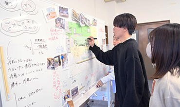 本学で学ぶすべての学生が2050年の社会で活躍できるようにと創造した、本学独自の学修スタイル。「問う」「考動する」「カタチにする」「見つめ直す」という4つのステップを繰り返しながらともに学び、成長していくことを目指しています。