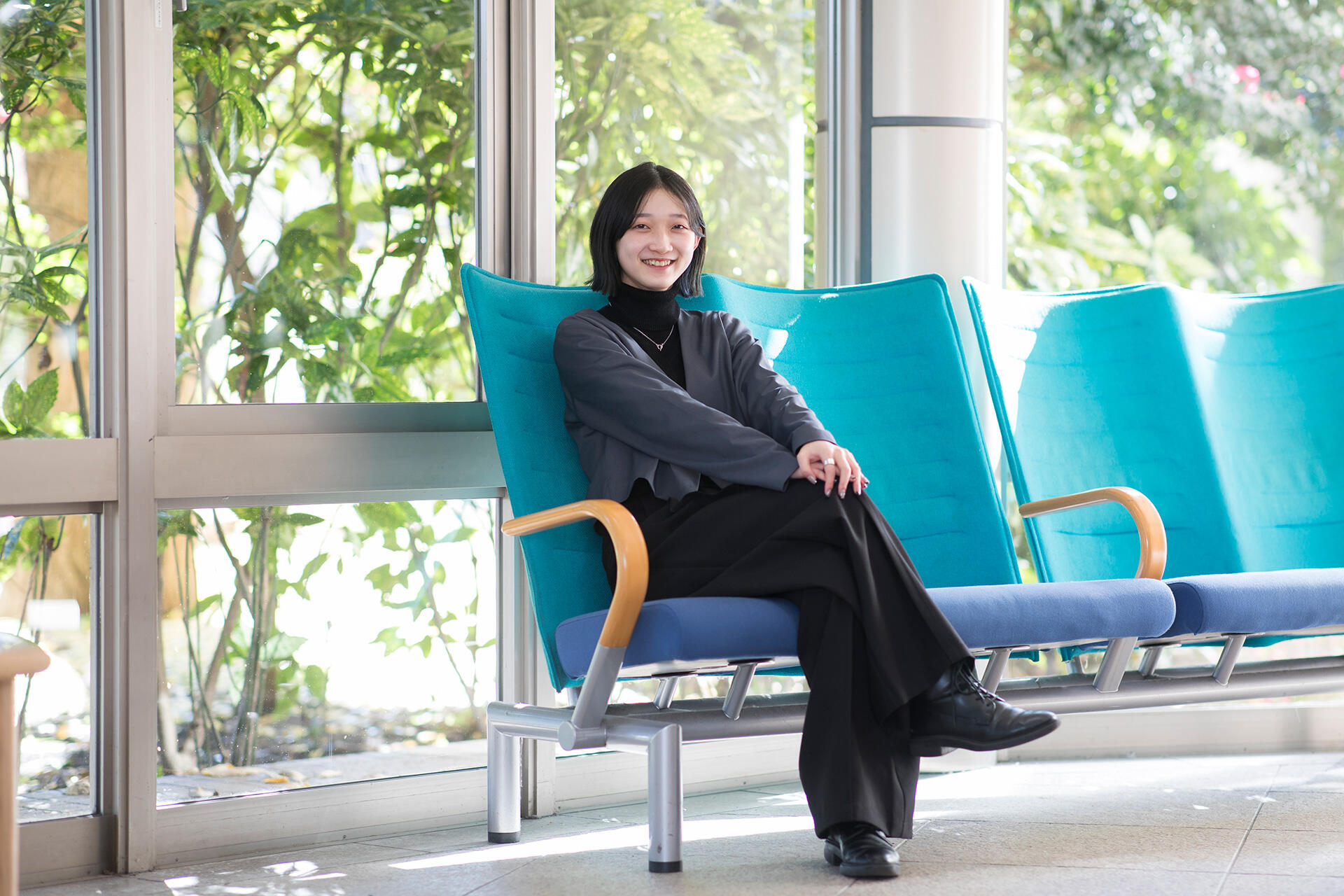 中学生の頃に家族で一軒家を建てた際、アイディアを空間として表現する建築士に惹かれ、建築デザイン学科を志望。デザインテクノロジーの学修環境が充実していて、実際に企業が使用する最新のソフトを扱うことができる点が、この学科の魅力だと感じます。『プロジェクト』科目では教室のリノベーションに取り組み、床材の選定から廃材の再利用まで、新しい空間のデザインにチャレンジ。実際に手を動かすことでより深い理解につなげることができたと感じています。将来は、環境に配慮した空間をデザインできる建築士として「今の地球に求められる建物」をつくりあげたい。そのためにも卒業後は大学院に進学し、専門性をさらに深めていきたいです。