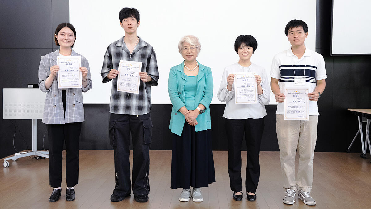 優秀賞として選ばれた4テーマについては登壇発表が行われ、小西学長から賞状が授与されました。