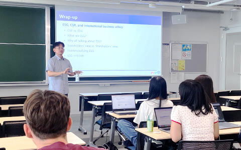グローバルビジネス学科では、韓国の延世大学からJong Min Lee准教授を有明キャンパスにお迎えし、毎年恒例の集中授業「インターナショナル・レクチャーズ」を9月8日から11日までの4日間にわたり開講しました。