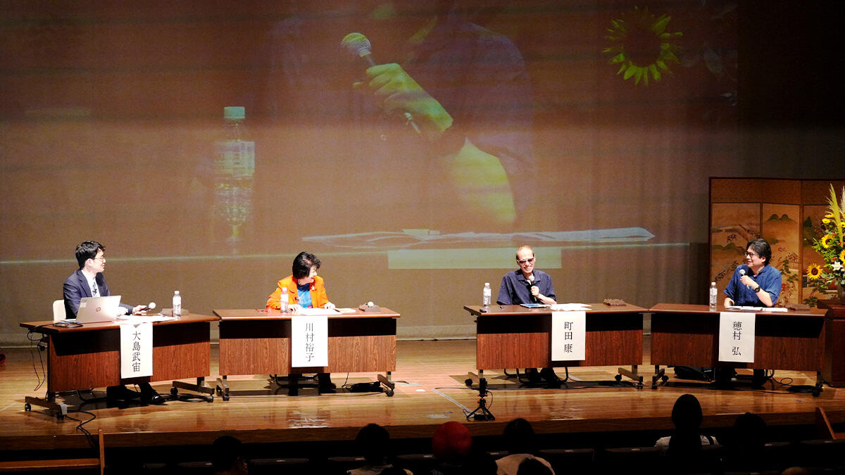 ディスカッション「創作と研究の対話」では、町田 康文学部特任教授、歌人の穂村 弘氏も加わり、研究と創作の関係や才能のあり方について意見を交わしました。来場者からの質疑応答でも、現代の表現や学びにまつわる多様な話題が取り上げられ、登壇者から活発な応答がありました。