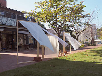 作品概要:広瀬川の川沿いに、風に舞う色とりどりのカーテン。その隙間から見えるのは、いつもとは違う色彩に満ちた世界。見慣れた日常を特別なものに変える。