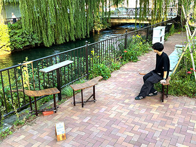 作品概要:本作品は、川の流れ、人の流れ、まちの流れ、「流れ」をイメージしている。広瀬川周辺に人々を惹きつけ、滞留を生む居場所を形成した。フェンスを越して、川の流れるような曲線を取り入れることで、境界線が曖昧になるようなストリートファニチャーを作ることができた。広瀬川に新たな流れをつくるきっかけになりたい。