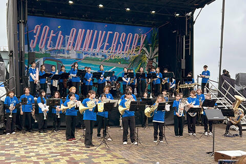 10月25日にゆりかもめ車両基地において、「ゆりかもめ開業30周年記念車両基地公開イベント」が開催され、本学の和太鼓同好会「隼」と吹奏楽部「ウインドアンサンブル」がステージ出演いたしました。
