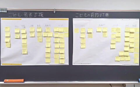 こどもの自殺対策についても、同じように現状と課題のご説明ののち、受講生が政策を考えて模造紙に貼りました。こちらについても、源河さんから、多様な提案をしてくれて参考になるとのコメントをいただきました。