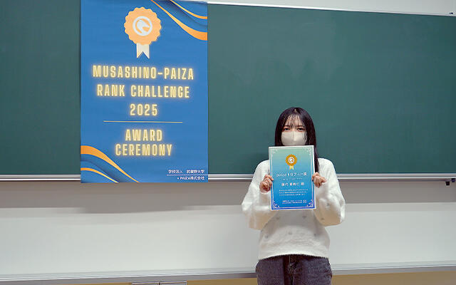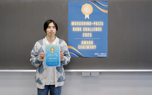 12月18日、有明キャンパスにてプログラミング学習応援企画「paizaランクチャレンジ2025」の表彰式を行いました。表彰式では、「ランク賞※1」および「トロフィー賞※2」の上位者に、武蔵野大学スマートインテリジェンスセンター(MUSIC)の林 浩一センター長から表彰状が授与されました。