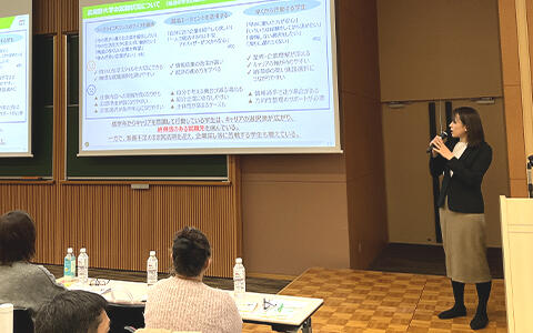 2月7日、有明キャンパスにて学部1・2年生の保護者の方を対象とした「保護者向け就職説明会」を開催しました。当日はあいにくの雪模様でしたが、大教室が満席となるほど多くの保護者の皆様がご来場くださり、最新の就活動向の共有や、学生・卒業生を交えたパネルディスカッションを通じて、学生の将来を共に考える有意義な時間となりました。