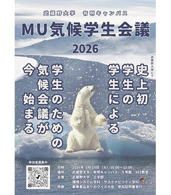 2月10日、有明キャンパスにおいて本学初となる「MU気候学生会議2026」を開催しました。本会議は環境システム学科(2023年度よりサステナビリティ学科に名称変更)の学生グループの呼びかけにより実現したもので、近年国内外で注目される「気候市民会議」をモデルに本学独自の形式にアレンジし開催したものです。