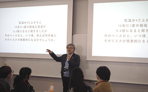 気候変動に対して何をしていいかわからないという声が強まっているなか、行政や企業に任せず、誰もが自分たち主導で学び、気候アクションを起こしていくことが必要だと考えています。各地の気候市民会議のサポートをしたり、授業内で世の中の動きとして「気候市民会議」を取り上げています。学科としても気候学生会議ができないだろうかと考えていたところ、学生たちが「学生主体で気候市民会議を実施したい」と動きだしてくれて、今回の開催となりました。主体となった学生たちは、自分たちで学生団体を立ち上げ、1年生時から地域のごみ拾い、キャンパス内の古着リユース、企業と連携した環境映画やイベント出展等の活動など様々な形で走り続けてくれました。今回はメンバー(清水 美知花さん、戸田 二巴さん、小林 千夏さん、林 利咲さん、今野 こももさん)が卒業する前のラストイベントとして主催してくれ、後輩たちによいバトンパスができたのではないかと思います。