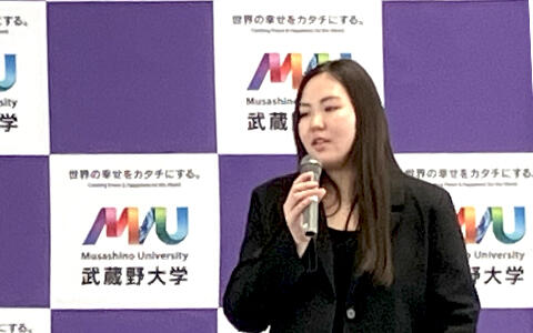 日本で学びたい一番の理由は、日本の文化です。日本の文化は、母国カザフスタンと似ている部分があると感じています。日本の学生や先生、そして他の協定留学生とつながりを持てることに大きな魅力を感じています。また、日本は歴史が深く、現代の生活の中にもその豊かさが感じられる点や、テクノロジーが発展している点にも興味があります。武蔵野大学では多くの授業を履修し、さまざまなバックグラウンドを持つ学生と協力しながら学べることは、とても貴重な経験になると思います。留学を通して新しいことに挑戦し、人としても成長していきたいです。