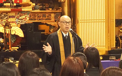 ご入学おめでとうございます。築地本願寺へようこそお参りくださいました。私からは築地本願寺の歴史と、これからの学びについてお話しさせていただきます。