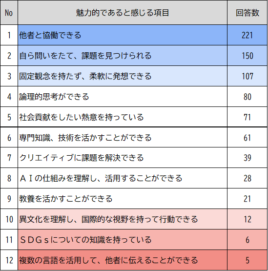 (本アンケート調査は毎年実施しておりますが、2025年度調査より資質・姿勢の一部項目と選択肢を変更しました。)