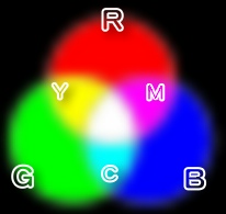 http://www.hm.h555.net/~irom/シアン(C)とマゼンタ(M)を混ぜると、青(B)になる。